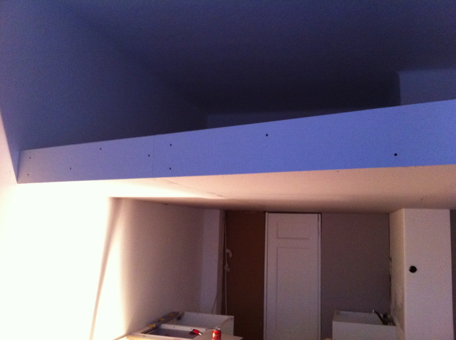 Tänään on sitten viides päivä. Jäljellä on vielä tasoittamista, hiomista, näpertelyä ja maalaamista. Sitten asennetaankin lamput, sähköt ja ym. valaistus. Rappuset tilasin italiasta eilen ja ne ovat täällä n.2 viikon kuluttua.